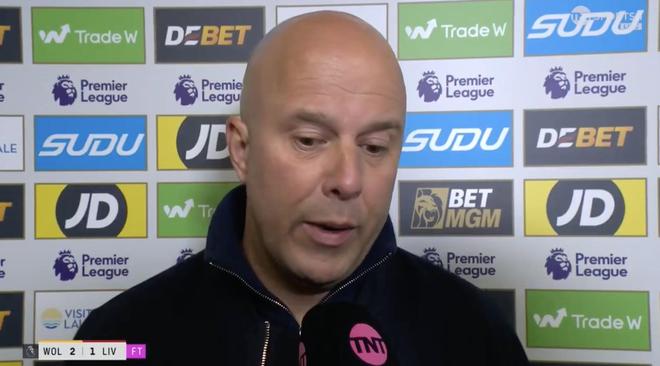英超第29轮,利物浦客场1-2不敌狼队,赛后,红军主帅斯洛特接受了TNT体育的采访。